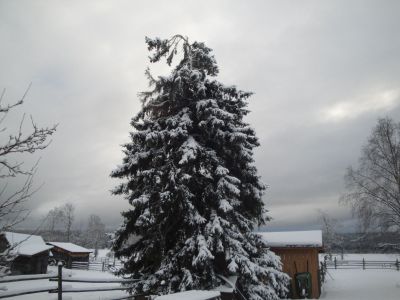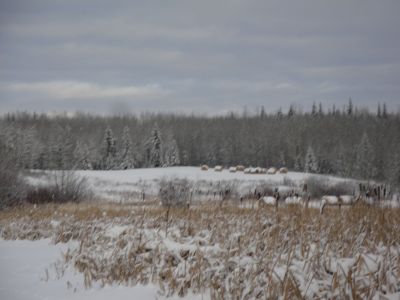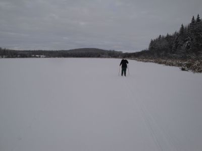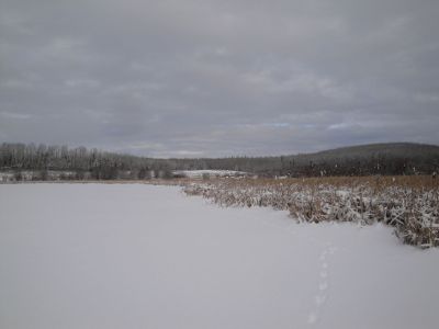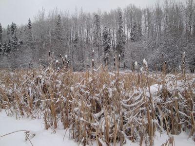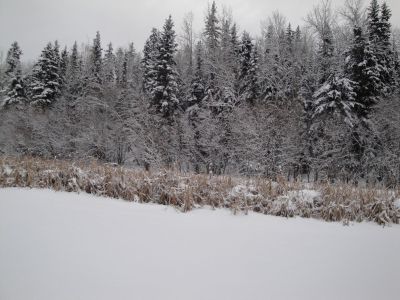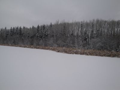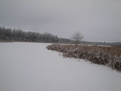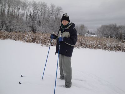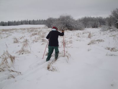We just couldn't get enough of that cross country skiing. The next day we went out to the slough on the north side of the farm. Wonder of wonders, it was frozen over. We had a wonderful time traversing the slough, with the snow gently falling and the silver trees above us, all giving homage to their Maker.